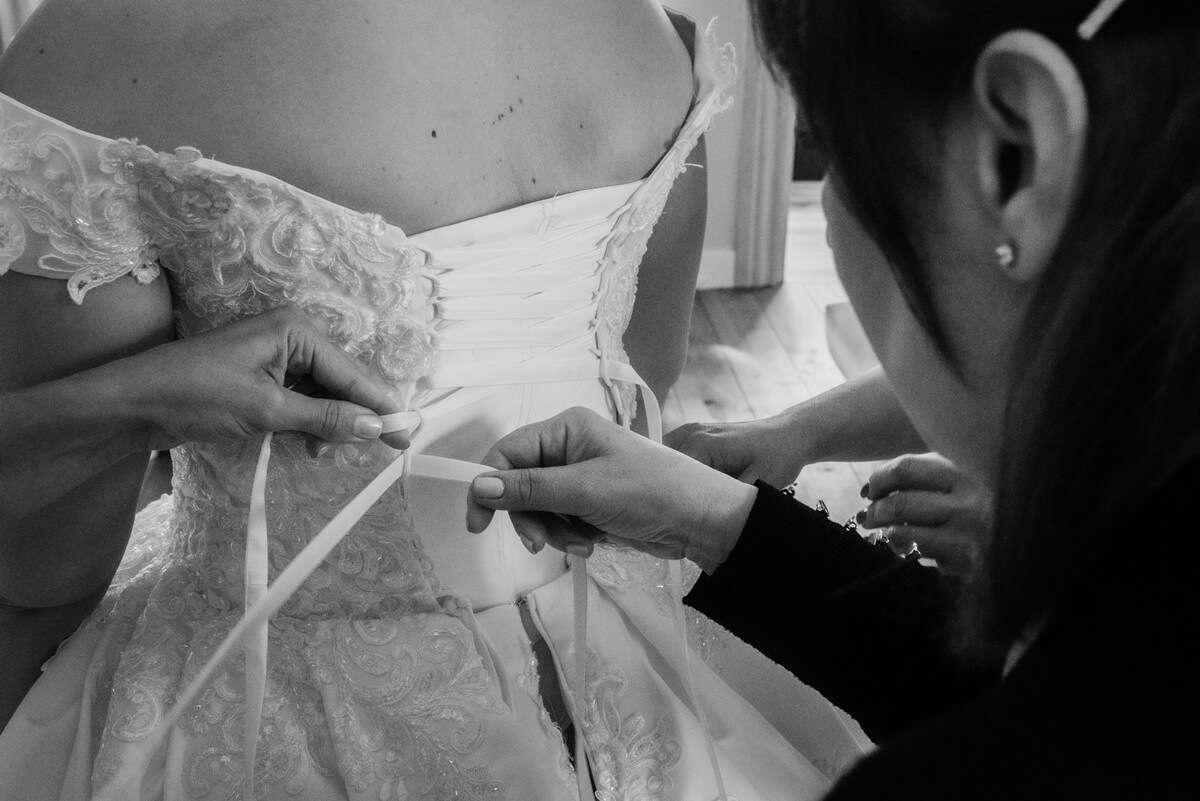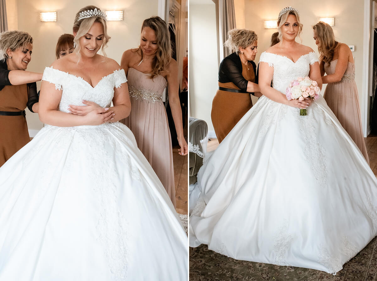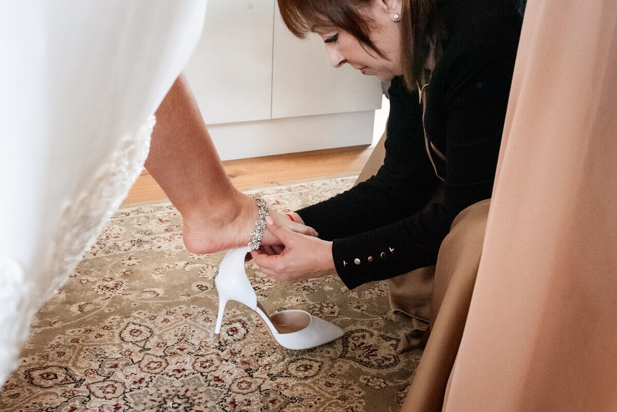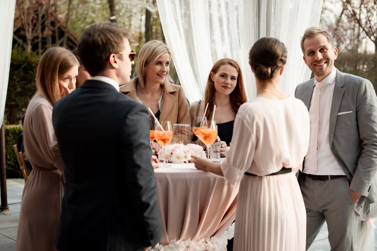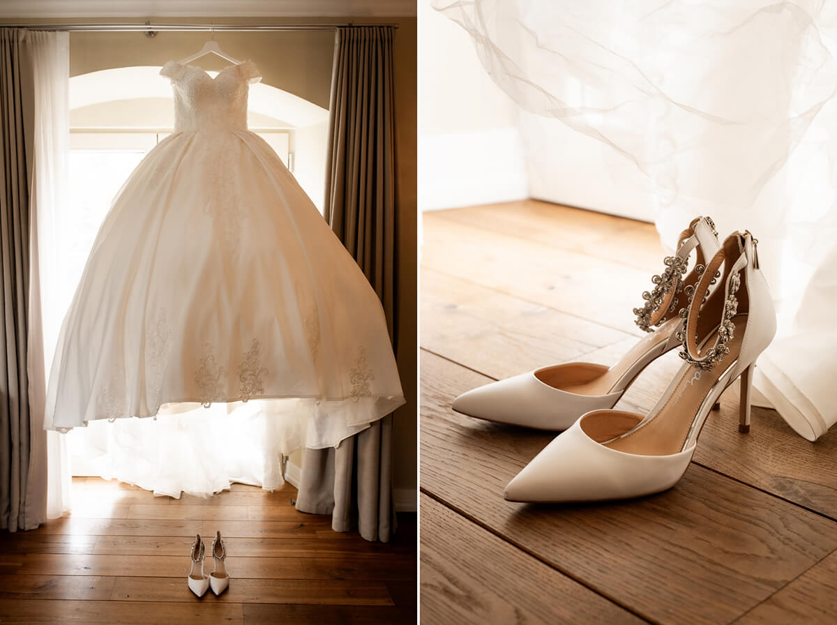 Przygotowania do tego wyjątkowego dnia odbywały się w komfortowych pokojach hotelowych, które oferują luksus i spokój. Pan młody miał swój własny pokój z tarasem – to właśnie tam zorganizowaliśmy jego szykowanie się do ślubu w gronie najbliższych przyjaciół. Ania wraz ze swoimi świadkowymi rozpoczęły od lampki szampana. To idealny moment na uchwycenie ich prawdziwej przyjaźni. Panna Młoda wymarzyła sobie swój ślub w klimacie glamour – wszystko było idealnie przygotowane pod ten właśnie styl. Tego dnia Ania miała na sobie piękną suknię i delikatną koronę – prezentowała się jak prawdziwa księżniczka z zamku!