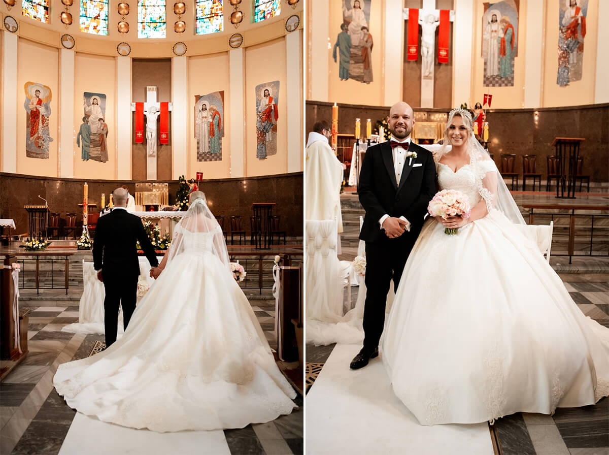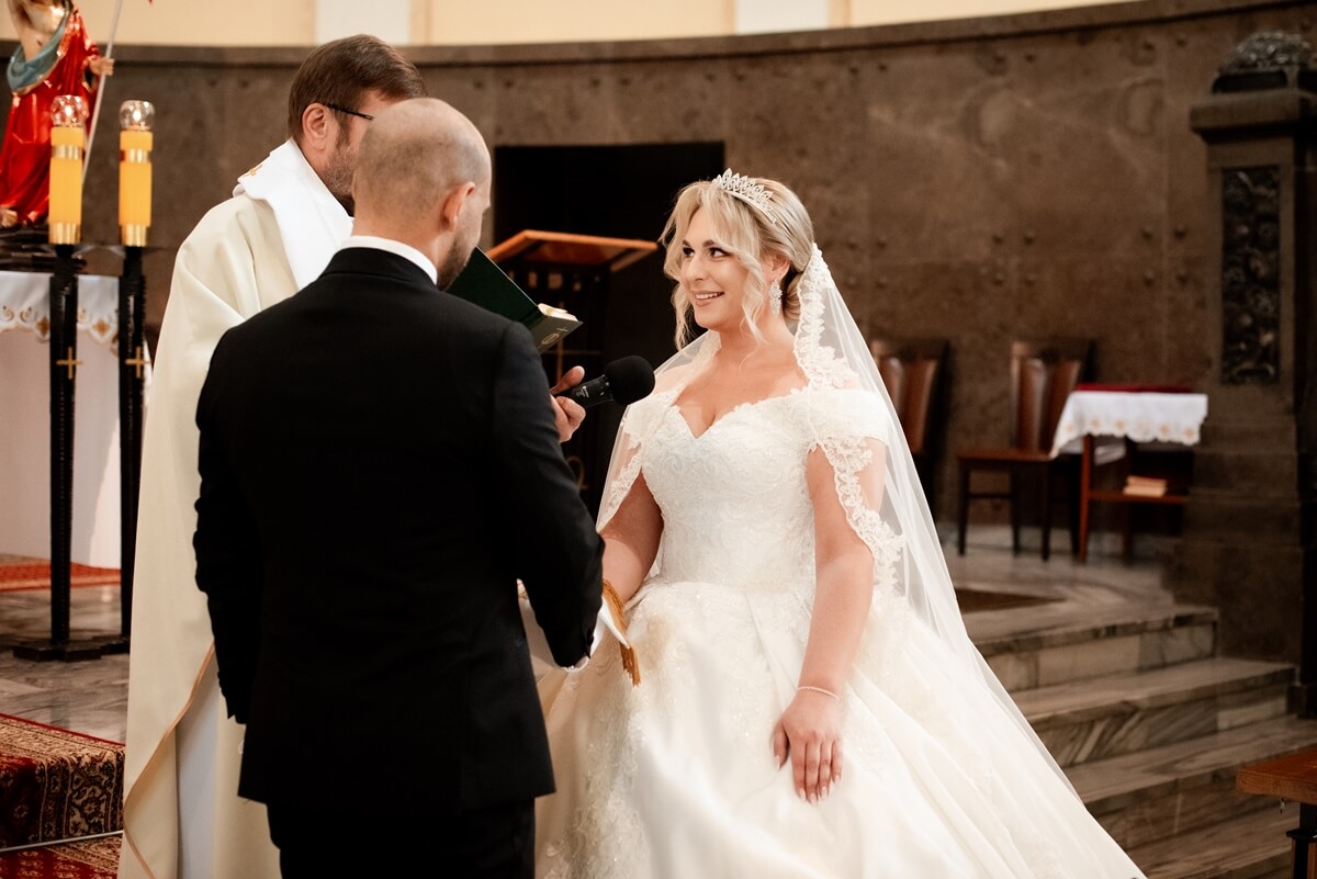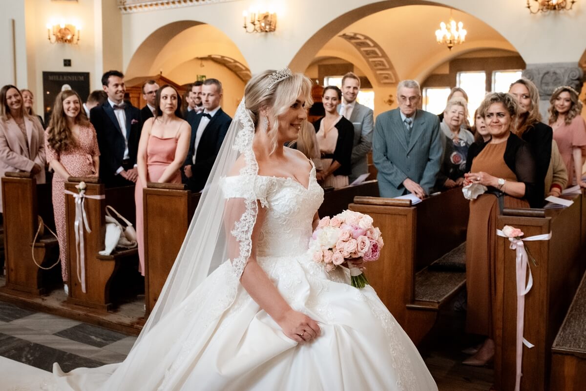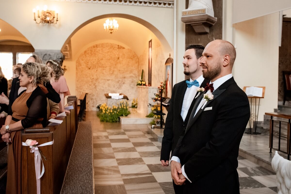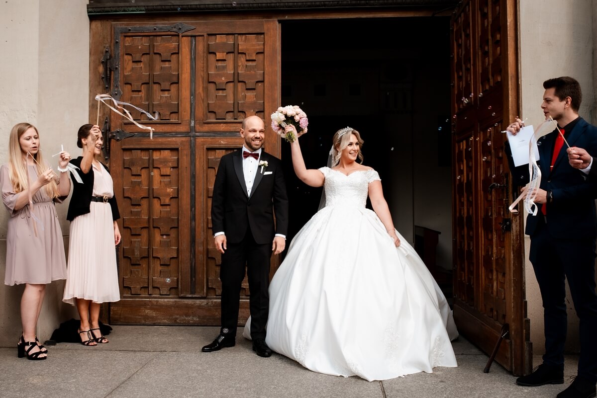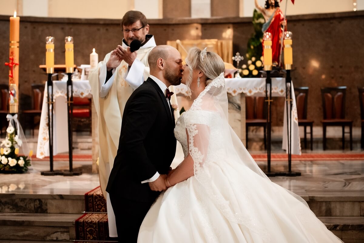 Ślub Anny i Simona odbył się w Kościele św. Augustyna, który jest zaledwie 15 minut od Zamku Topacz. Ten kościół ma swoją niepowtarzalną atmosferę i piękną architekturę, idealną na taki ważny moment.