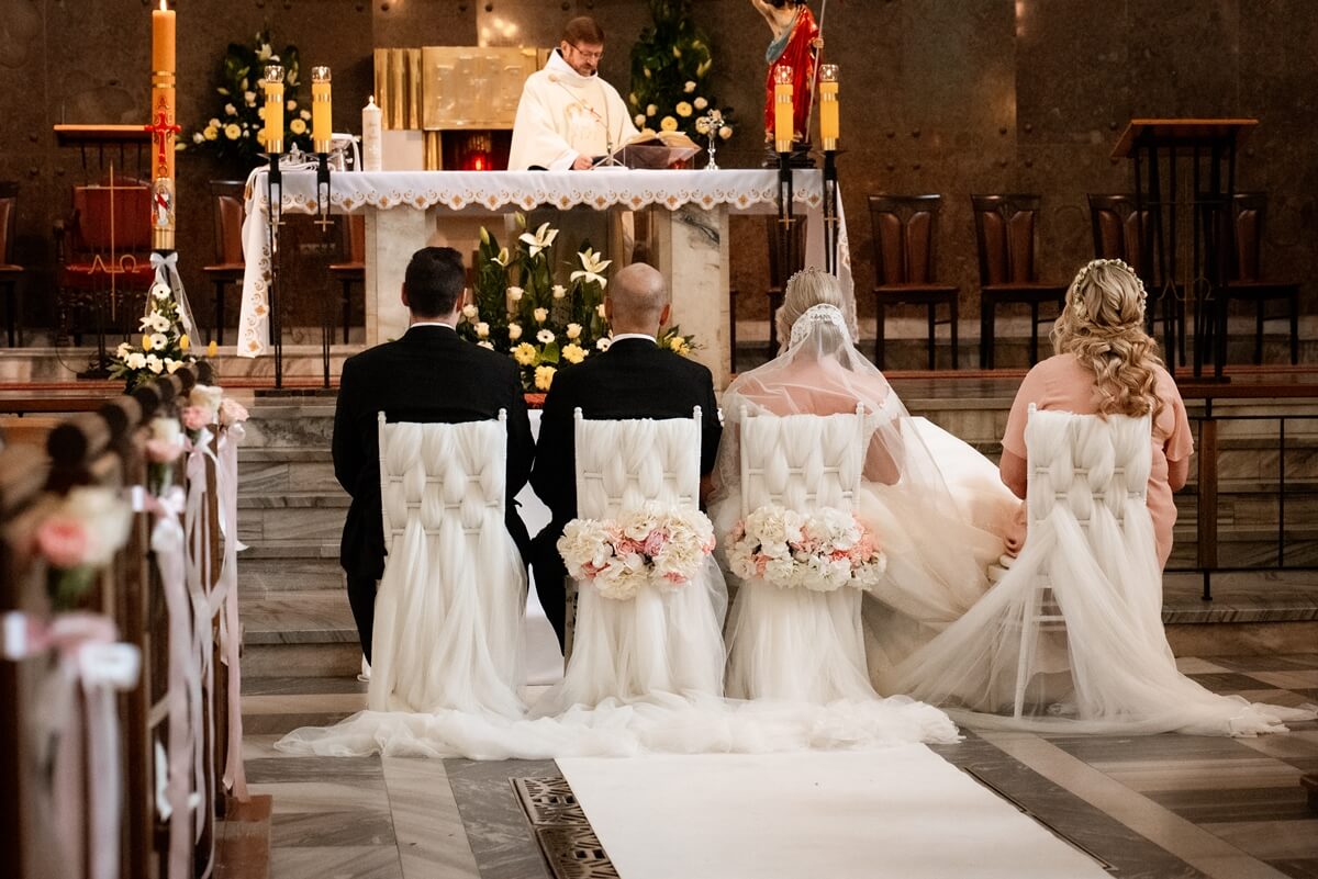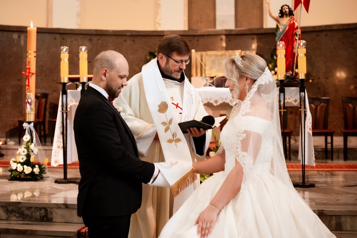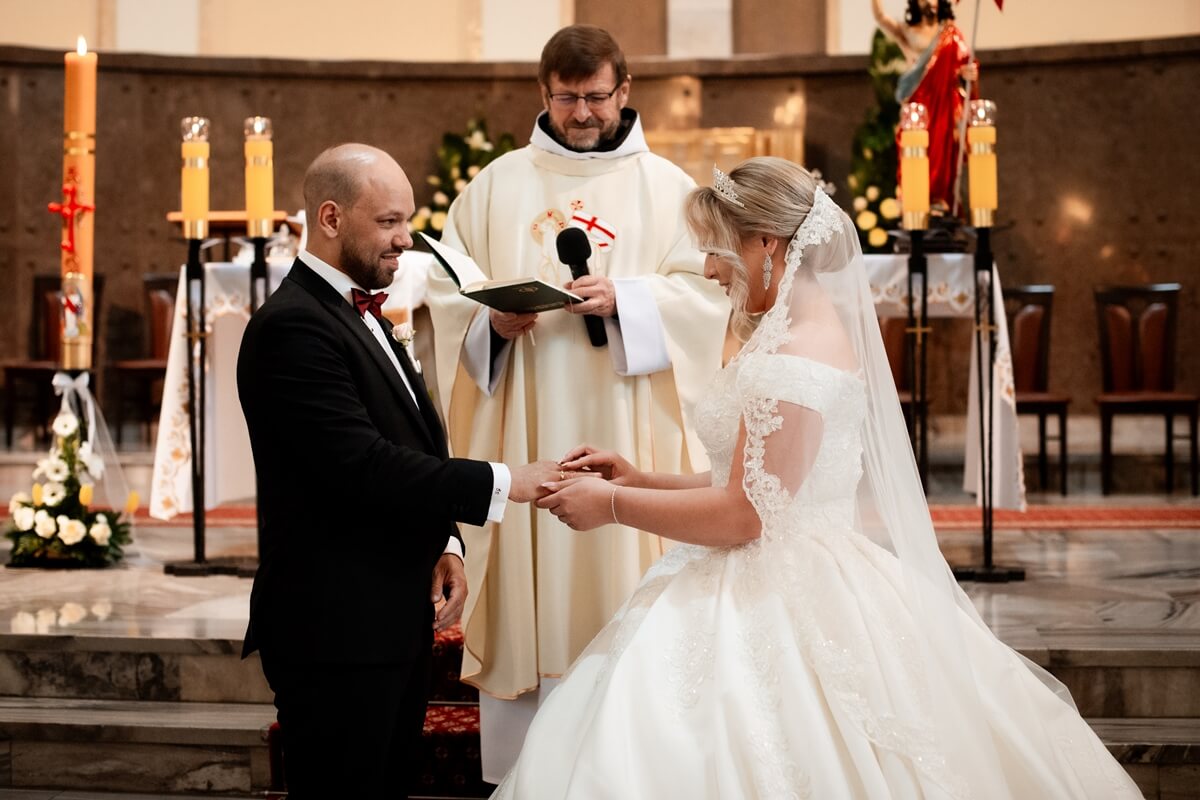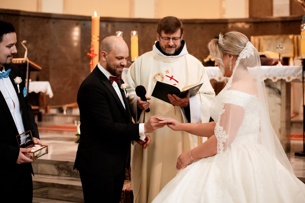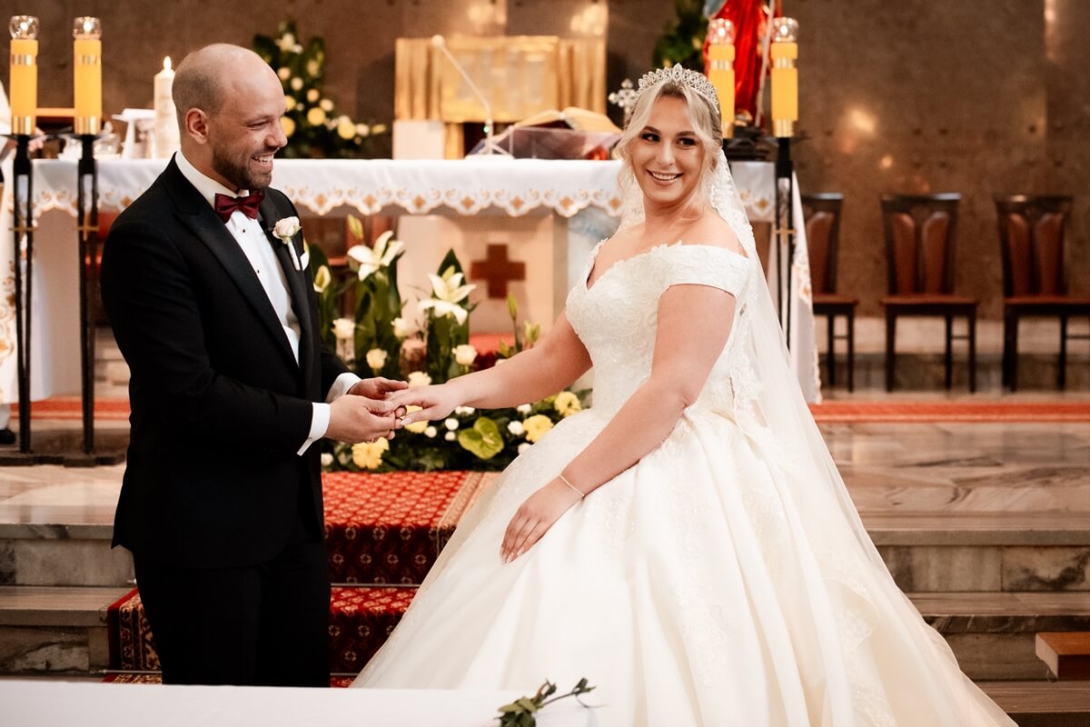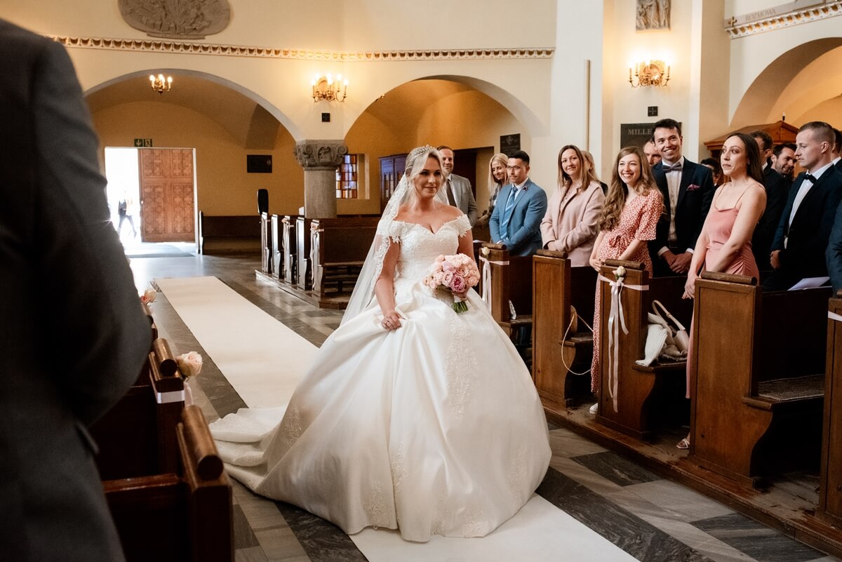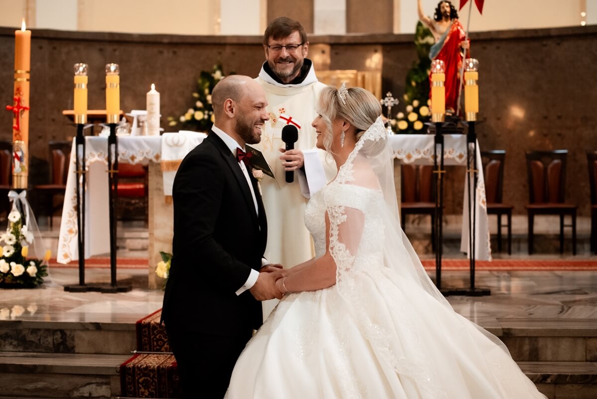 Ślub Anny i Simona odbył się w Kościele św. Augustyna, który jest zaledwie 15 minut od Zamku Topacz. Ten kościół ma swoją niepowtarzalną atmosferę i piękną architekturę, idealną na taki ważny moment.