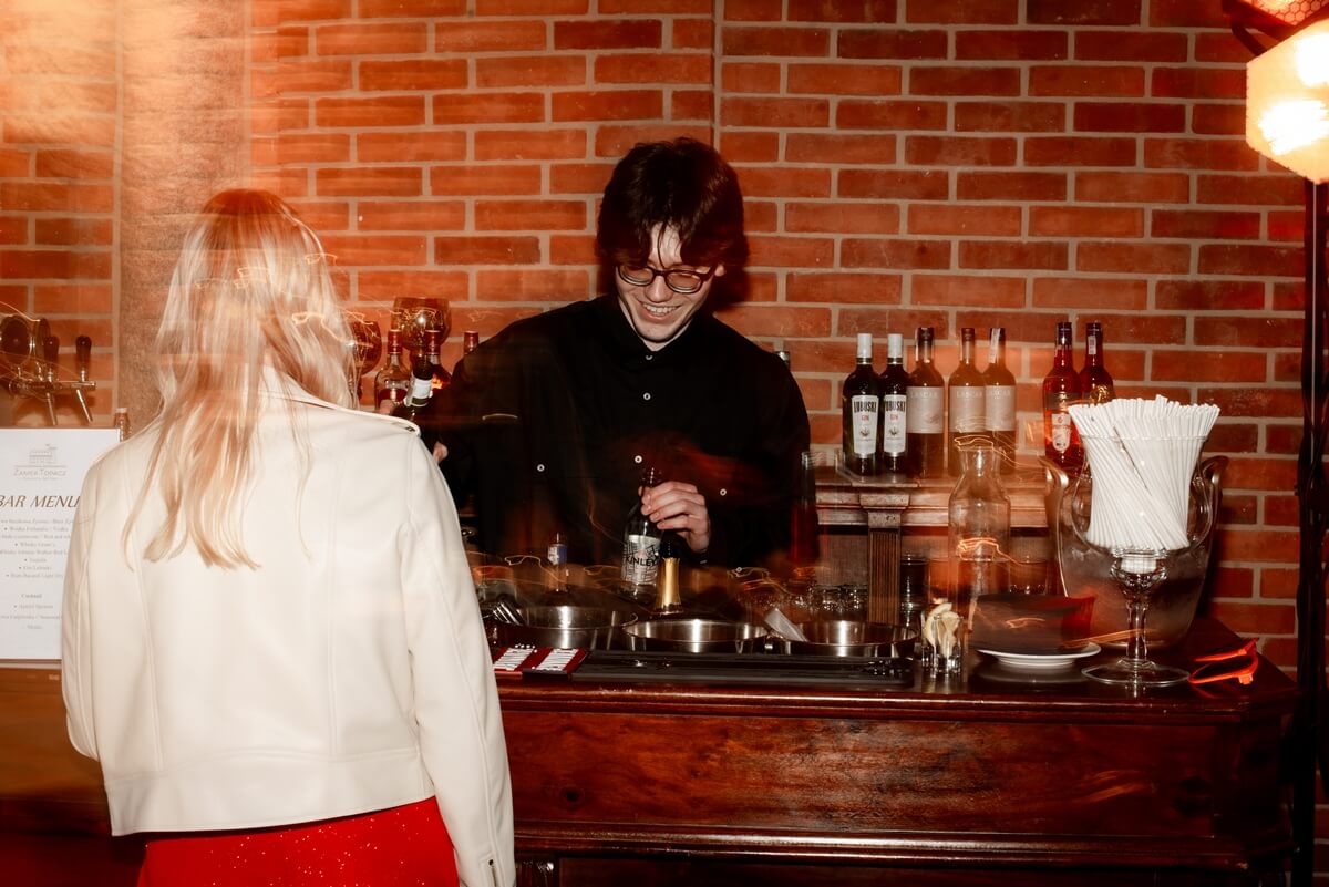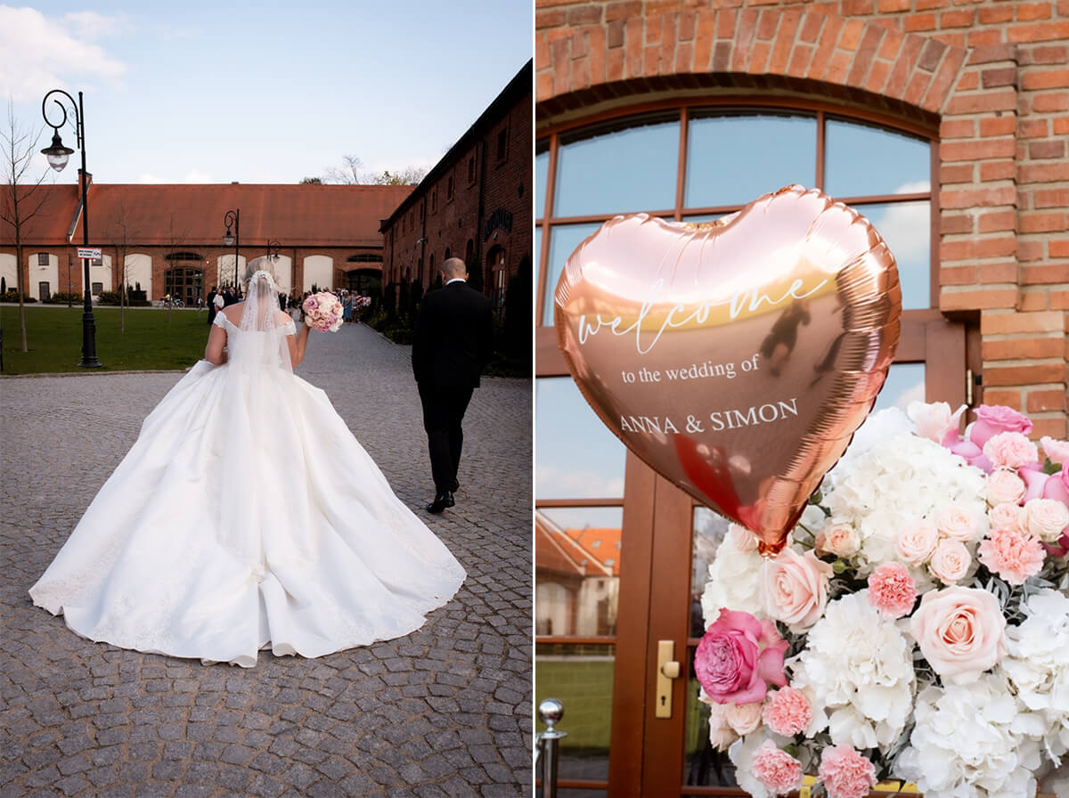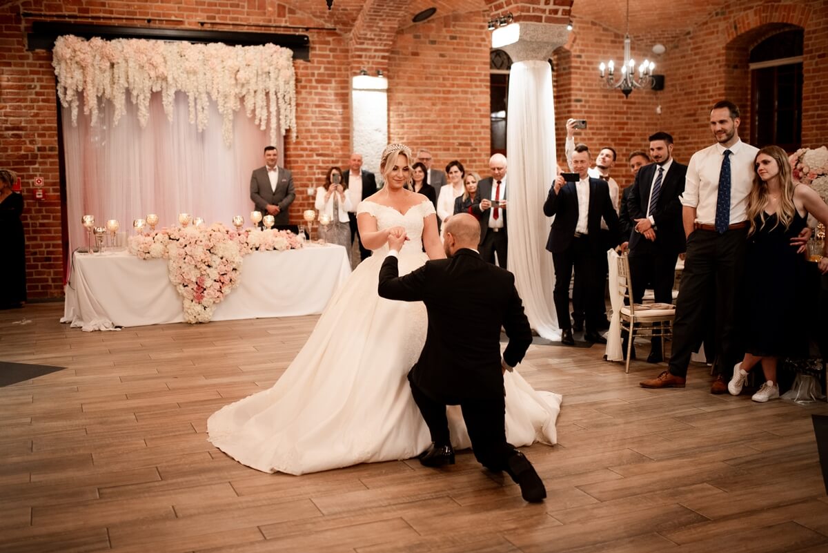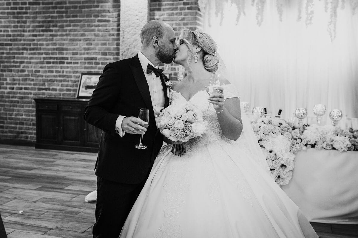 Wesele – to był naprawdę wyjątkowy punkt tego dnia! Ania i Simon zdecydowali się na Salę Kolumnową, która wyglądała jak balowa sala z bajki! To eleganckie wnętrze z ceglaną ścianą, kolebkowymi stropami i stylowym oświetleniem tworzy niesamowitą atmosferę. Granito­we kolumny dodają mu jeszcze więcej klasy i majestatu.
