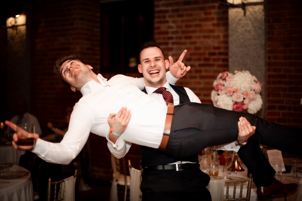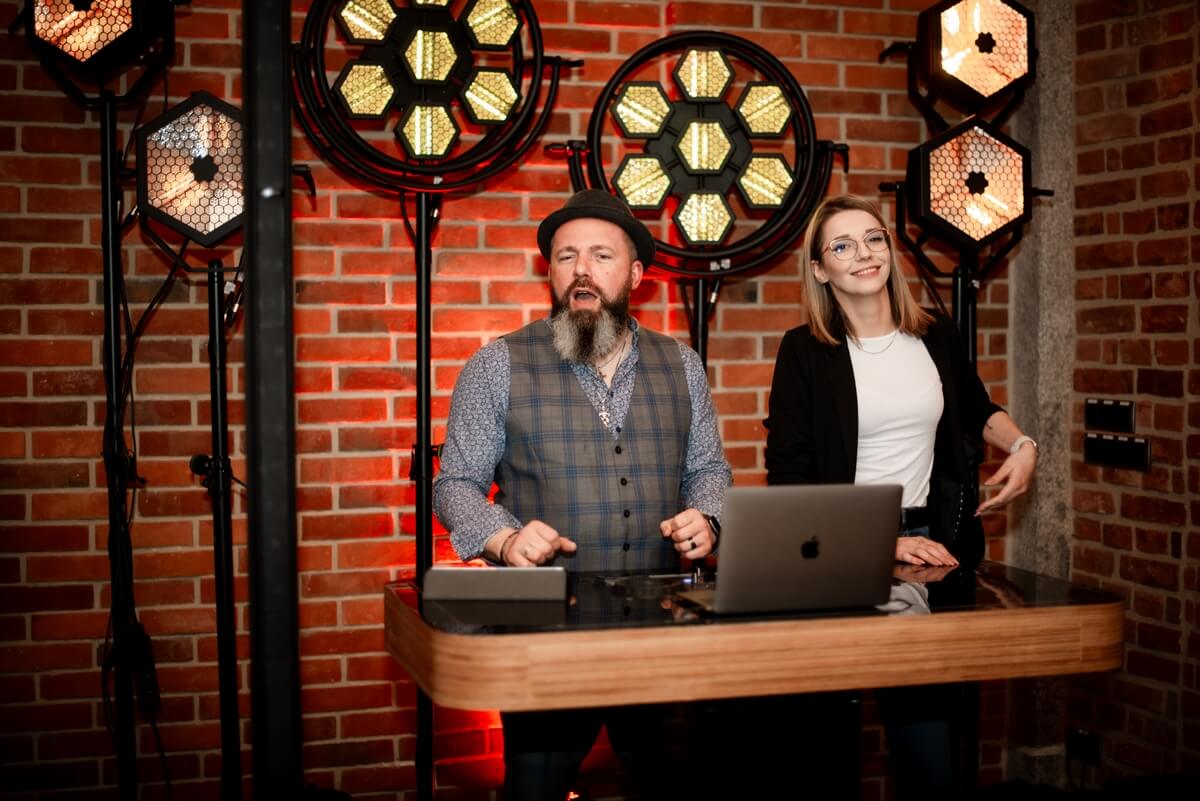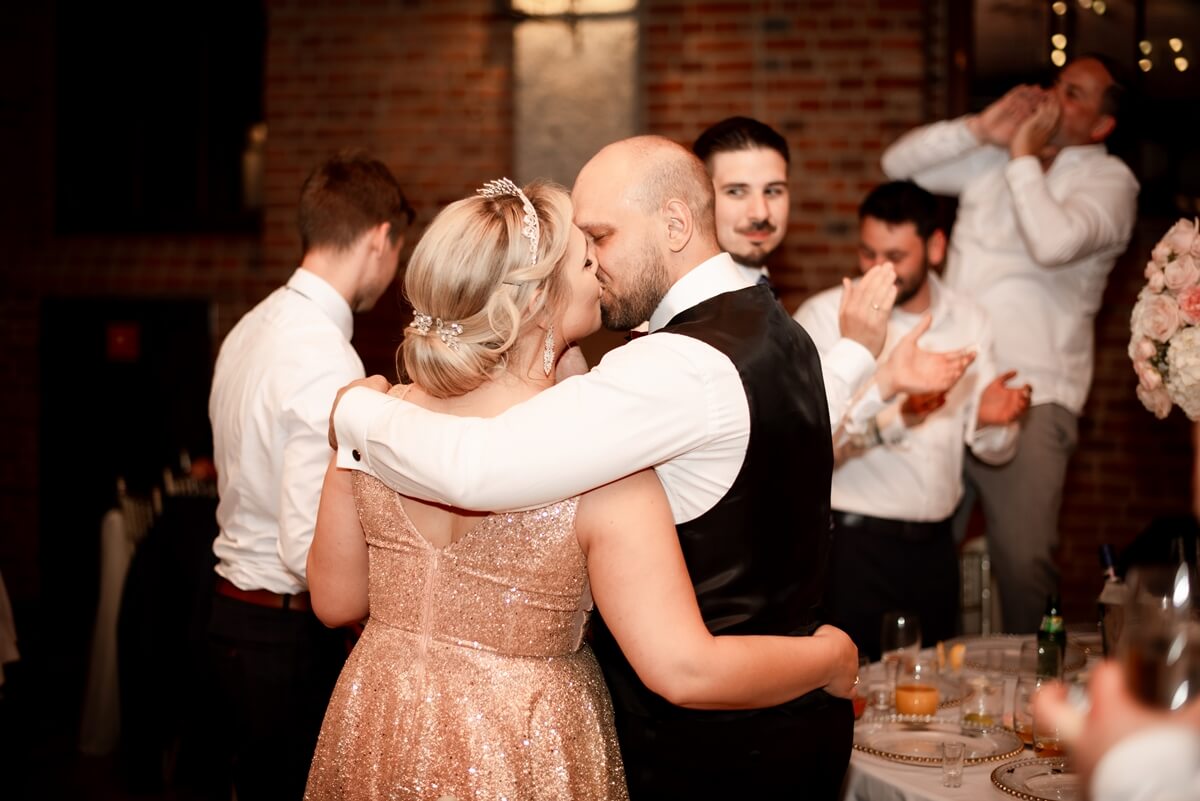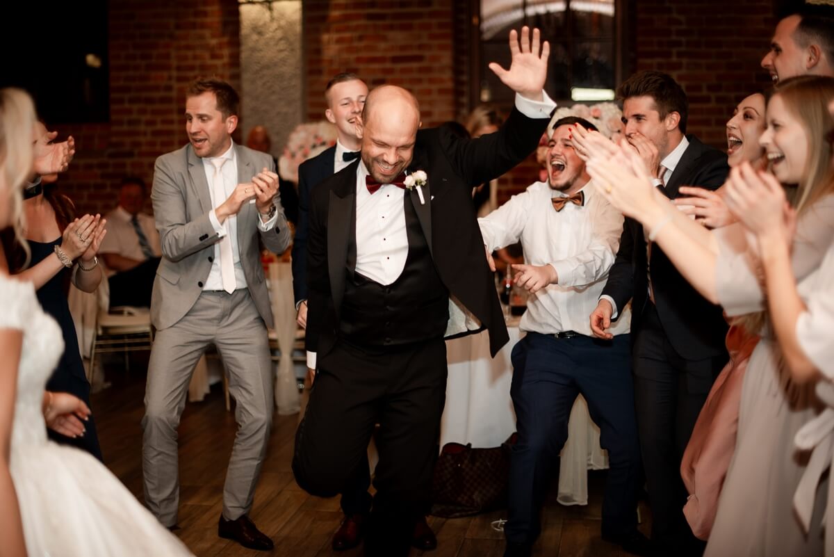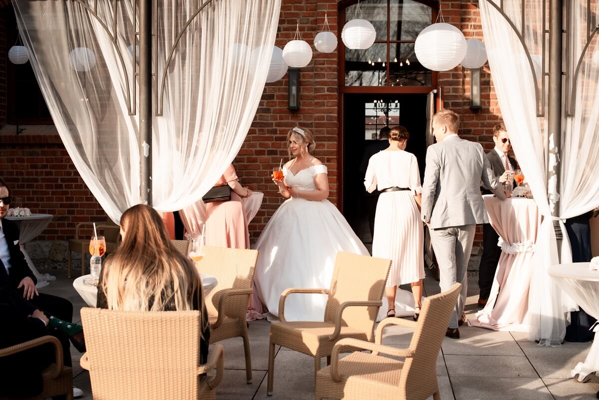 Wesele – to był naprawdę wyjątkowy punkt tego dnia! Ania i Simon zdecydowali się na Salę Kolumnową, która wyglądała jak balowa sala z bajki! To eleganckie wnętrze z ceglaną ścianą, kolebkowymi stropami i stylowym oświetleniem tworzy niesamowitą atmosferę. Granito­we kolumny dodają mu jeszcze więcej klasy i majestatu.